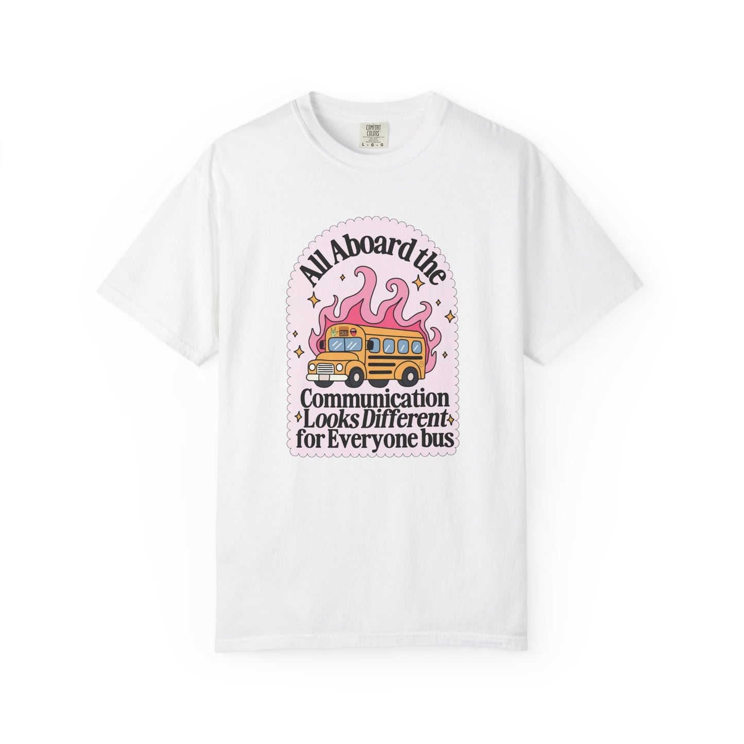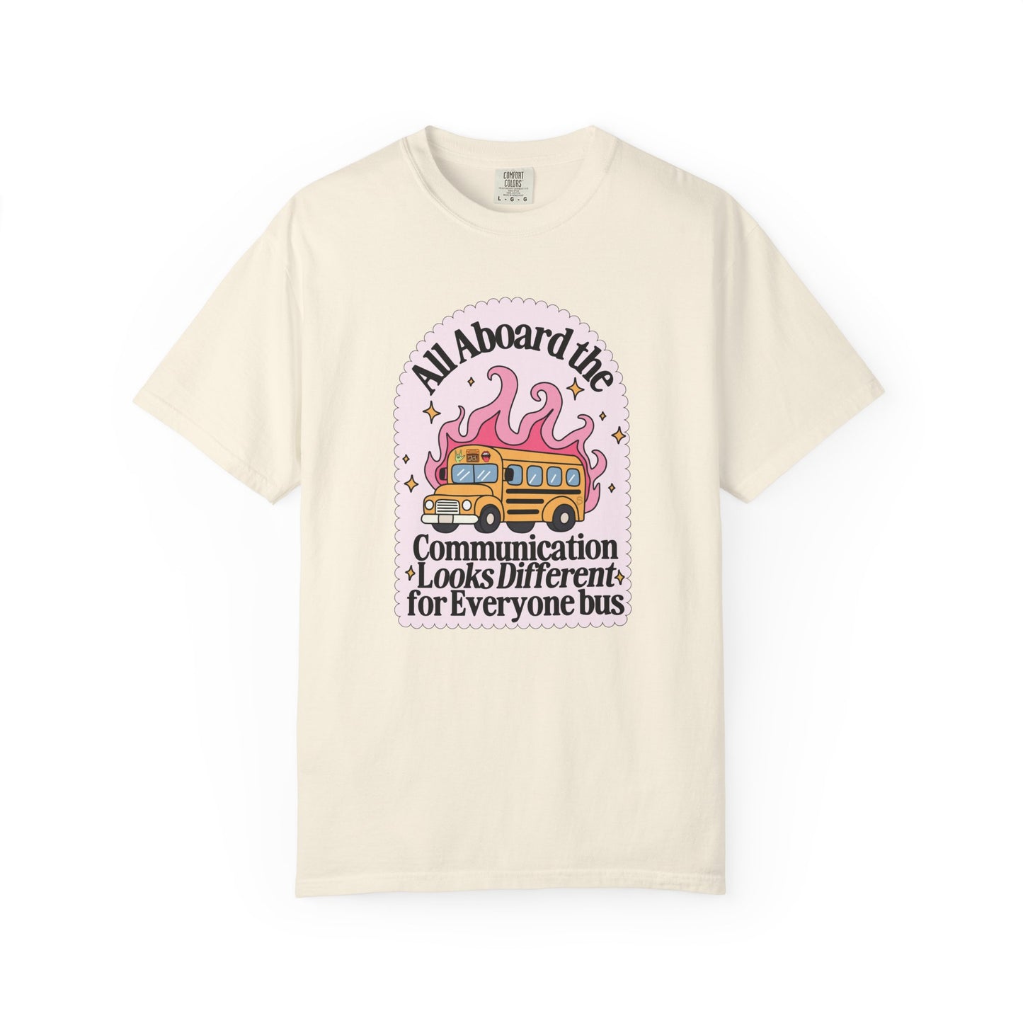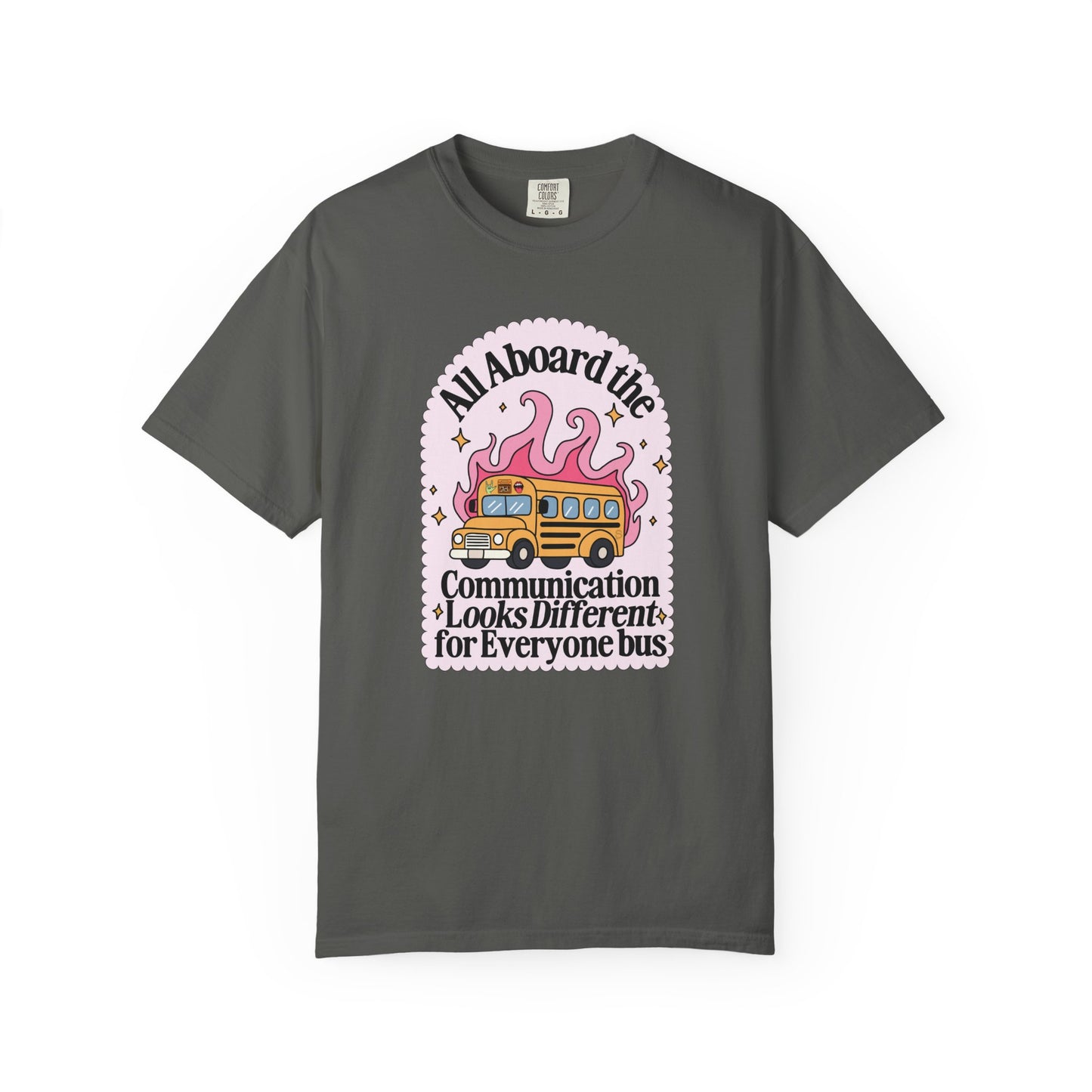 All Aboard the Communication Looks Different For Everyone Bus (Comfort Colors) Tee